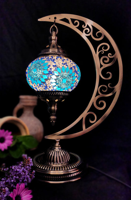 Turkish Mosaic Lamp - Light Blue Flower Design