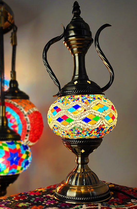 Gift a beautiful Turkish Mosaic Lamp! Ready to plug in! Shop our collections of unique bases - Moon Mosaic Lamps, Swan necked Mosaic Lamps and Aladdin Lamp designs - FREE SHIPPING OVER $150