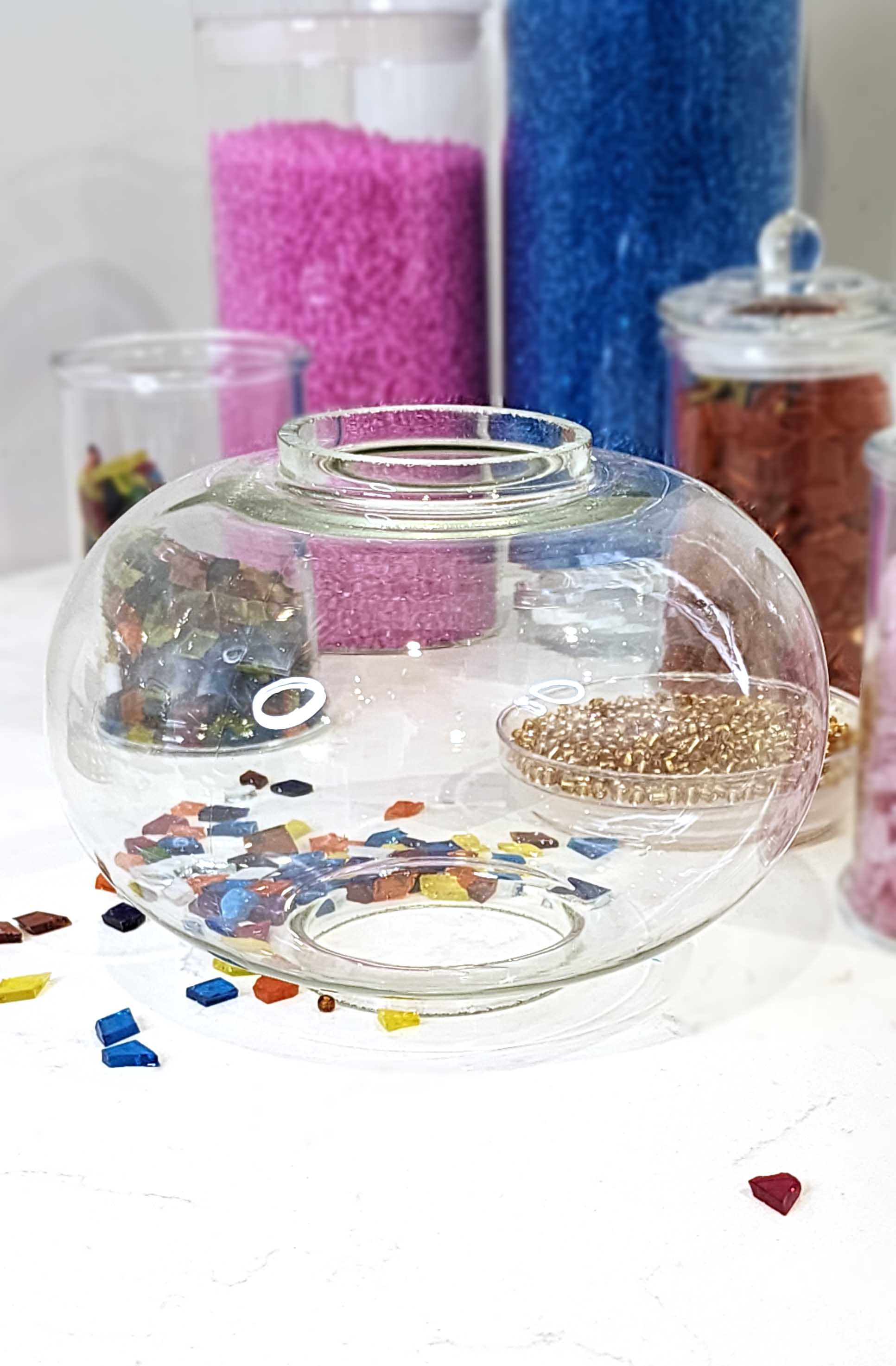 This blank is ready for your creation! - Sold separately giving you the opportunity to bespoke your own. Great for if you have extra mosaic cut glass and you would like to make a new design for your existing lamp base. Fits our 17cm lamp bases.