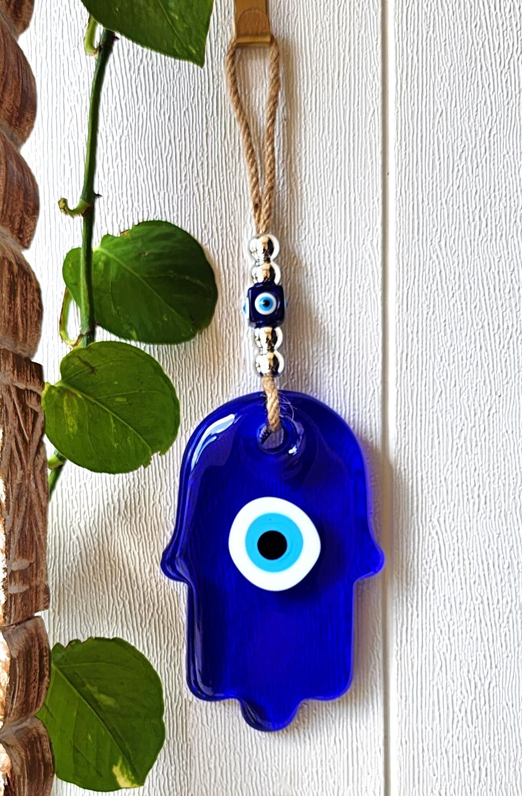 The beautiful glass symbol of rich blue has been crafted in Turkey to adorn your home and provide protection against the ill will and unwanted negative energy of others!